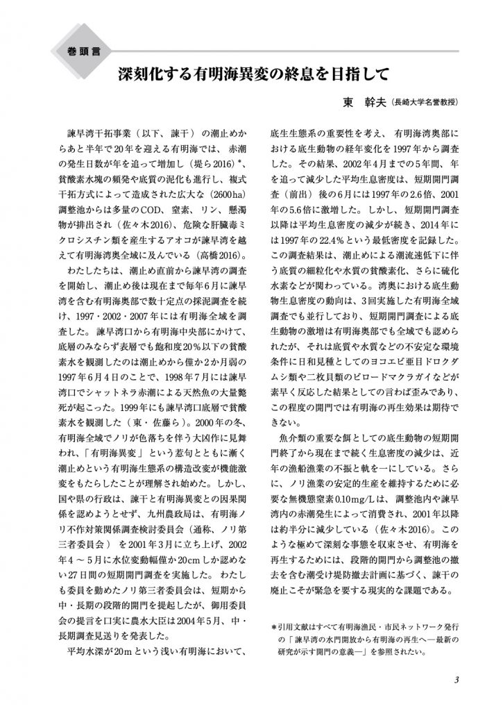 有明海の環境と漁業 第1号 投稿日: 2020年11月12日 10:23 PM by 有明海再生Net 有明海の環境と漁業 有明海の再生へむけた研究 資料館 有明海漁民・市民ネットワーク 2016年11月7日発行